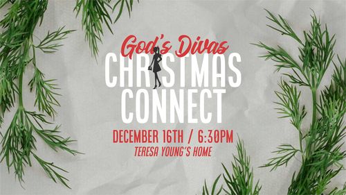 Ladies, you’re invited to join us for our God’s Divas Christmas Connect on Wednesday, December 16th at 6:30pm at the Home of Teresa Young