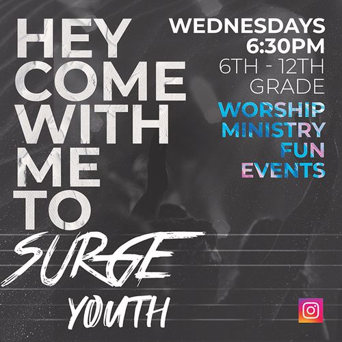 Surge Youth Ministry is for students in Middle School and High School. We exist because our church believes in the next generation.